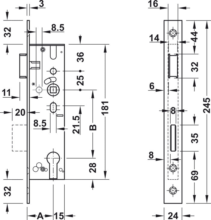 عرض المقدمة 24 مم للأبواب ذات الحواف والمسطحة