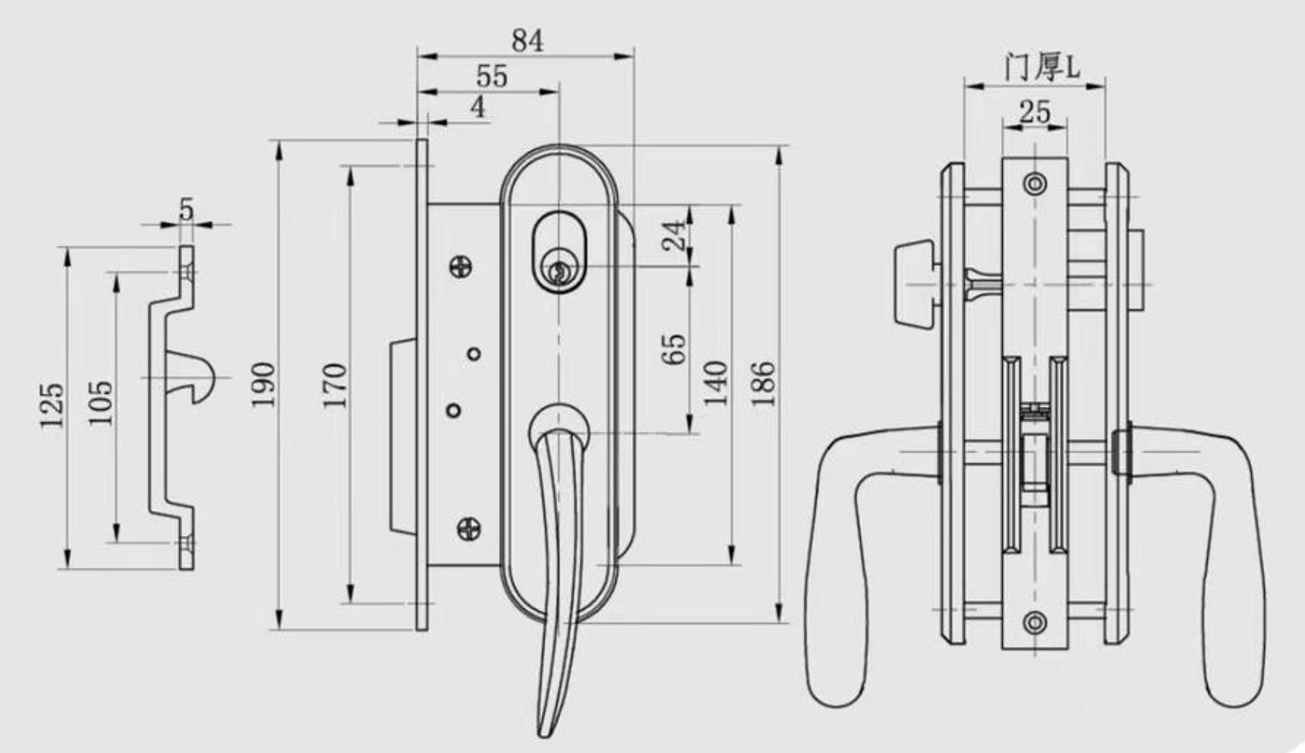 قفل حصان بحري منزلق مع لوحة مقبض C-3D 2910