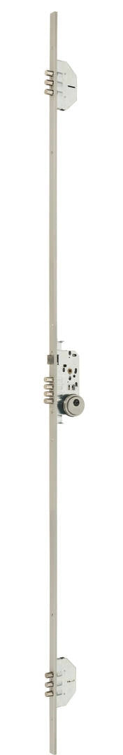 قفل نقر للأقفال الخشبية MCM 701-3 بثلاث نقاط قفل، وطرف أمامي على شكل حرف U مقاس 22×9.5 مم. يعمل القفل المركزي بأسطوانة يوروبروفيل، مع 4 مسامير دائرية، وزاوية تثبيت خلفية 50 مم أو 60 مم. المسامير بارزة بقطر 21 مم، مع دورتين رئيسيتين. محور داخلي 85 مم.