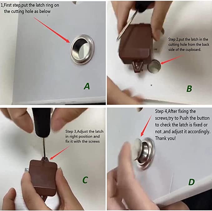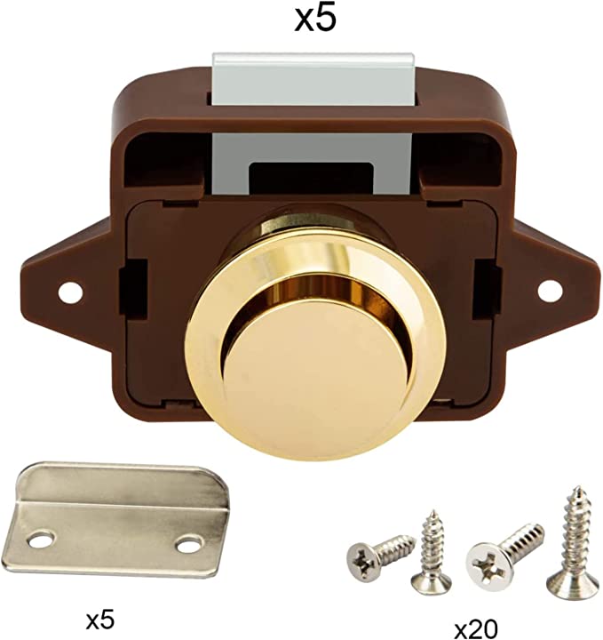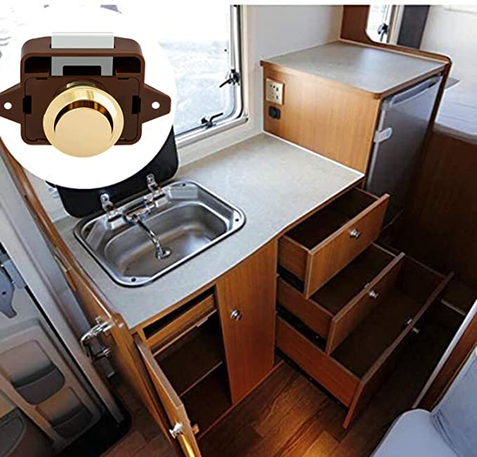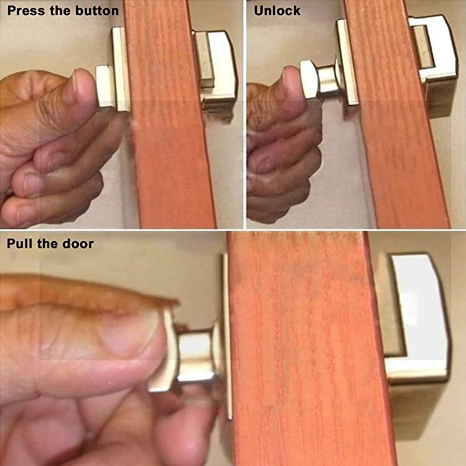 - وظيفة؟ تُثبّت مزاليج الضغط على الأزرار باب خزانتك أو خزانة ملابسك بإحكام، مما يمنع فتح باب خزانة الأثاث الداخلي أثناء تحرك اليخوت أو القوارب أو المركبات الترفيهية أو اهتزازها.