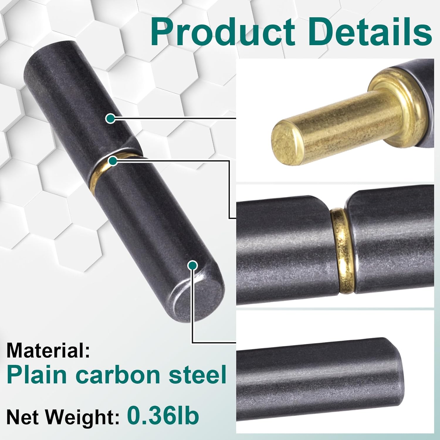 مفصلات برميلية ملحومة، مفصلات بوابة من الفولاذ الكربوني المتين، طول 2-1/2 بوصة وقطر 3/8 بوصة، مفصلة رصاصية دائرية قابلة للفصل لمنحدر المقطورة، باب متأرجح، بوابة قيادة، دبوس قطر خارجي 0.23 بوصة
