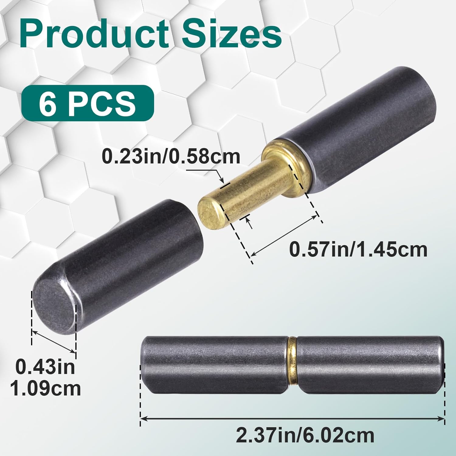- تشمل العبوة: 6 قطع من مفصلات البرميل الملحومة السوداء، تكفي لمختلف استخداماتك واحتياجاتك من الاستبدال. مقاس كل مفصلة باب 0.43 × 2.37 بوصة/1.09 × 6.02 سم، ومقاس دبوسها 0.23 × 0.57 بوصة/0.58 × 1.45 سم.