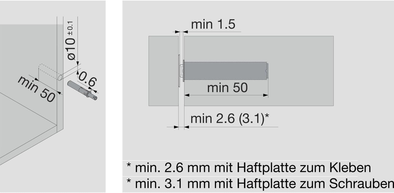 - لوحة التثبيت اللامركزية من Blum مع آلية المشبك قابلة لضبط الارتفاع بمقدار +/- 2 مم