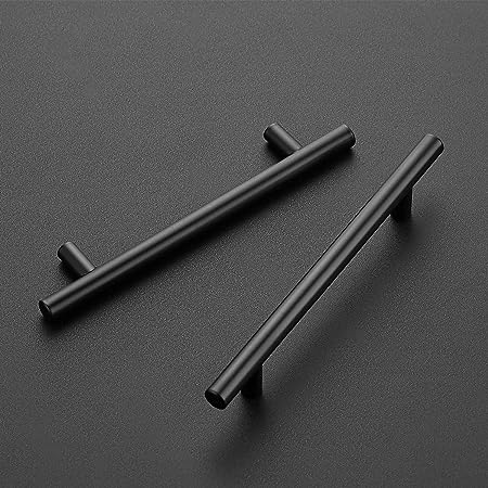 - Most commonly used: 10 bar pulls made of stainless steel finished with classic matte black coordinates well with other appliances and accessories. The black cabinet hardware, suitable for different styles of cabinets, wardrobe, wine cabinet, locker. The simple handles for kitchen cabinet coordination with multiple home décor style.