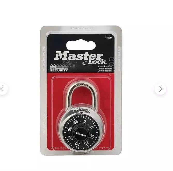 - The Master Lock No. 1500D Standard Dial Combination Padlock features a 1-7/8in (48mm) wide metal body for durability, with a stainless steel cover. The 9/32in (7mm) diameter shackle is 3/4in (19mm) long and made of hardened steel, offering extra resistance to cutting and sawing. The 3-digit combination offers keyless convenience. The locking mechanism features anti-shim technology, offering maximum security. The Limited Lifetime Warranty provides peace of mind from a brand you can trust.111