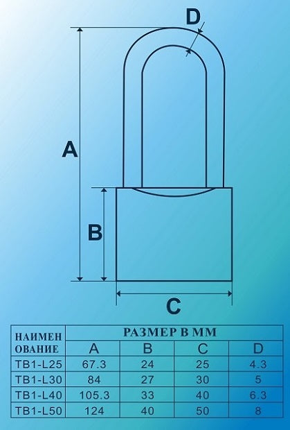 MSM Brass Padlock Long Shackle 50mm TB1-L50