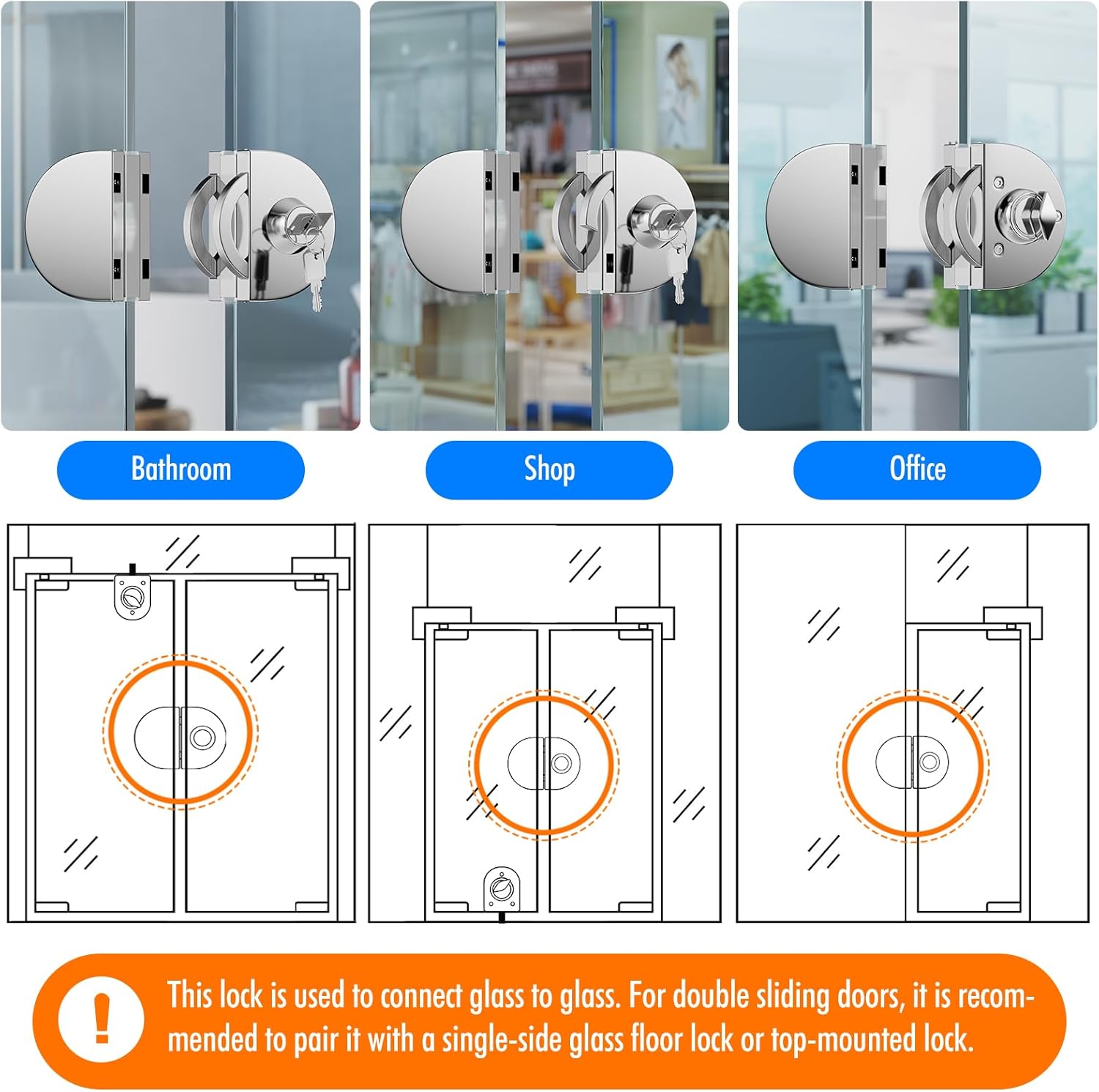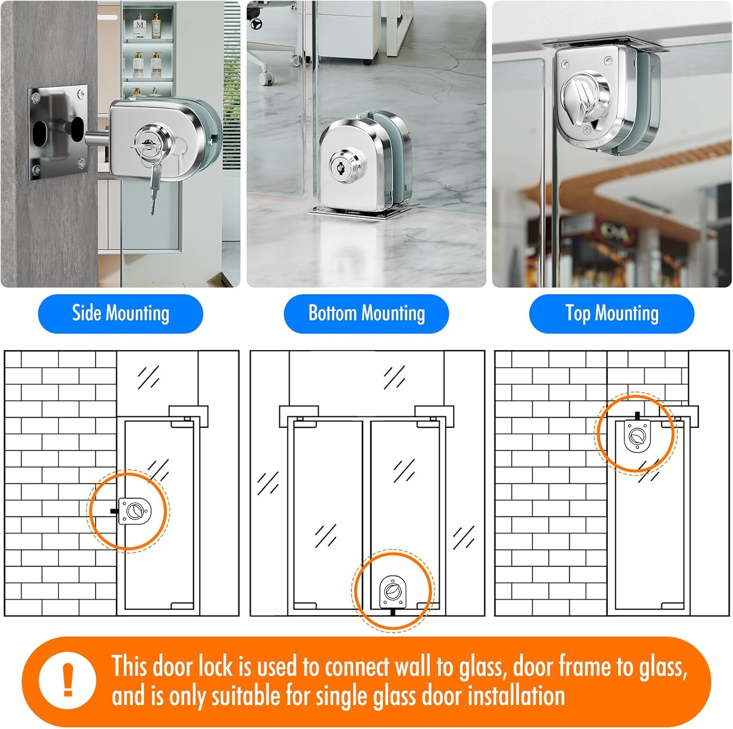 100% Brand New and Quality Guaranteed. Note: This Lock Only fit for the Thickness of 10mm-12mm Glass Door. Please Check your glass door's thickness. If your door's is not 10mm- 12mm, Please do not buy this item, Thanks. ★ Perfect fit for 10-12mm Glass Door ,4MM-10MM gap between the two glass door. ★ Easy to install and remove. ★ Designed in double curved door bolts, this lock set will be perfect for family house, flat gate, office door,etc. ★ Comes with 3 keys. ★ Material : High quality durable metal Stainless Steel Package Content: 1 Pair x Glass Door Lock, 3 x Keys, 6 x Screws