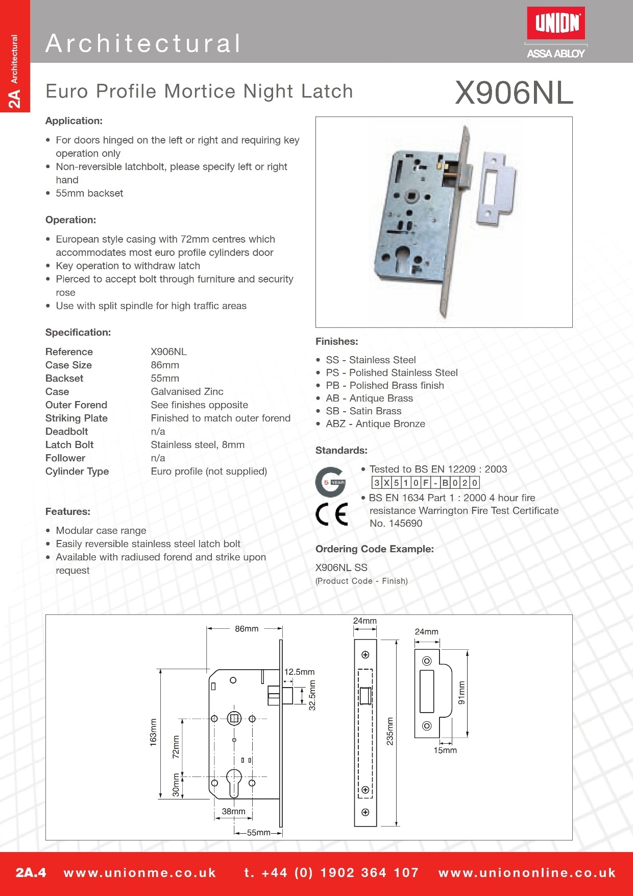 Union Mortise Night Latch X906NL 55/72
