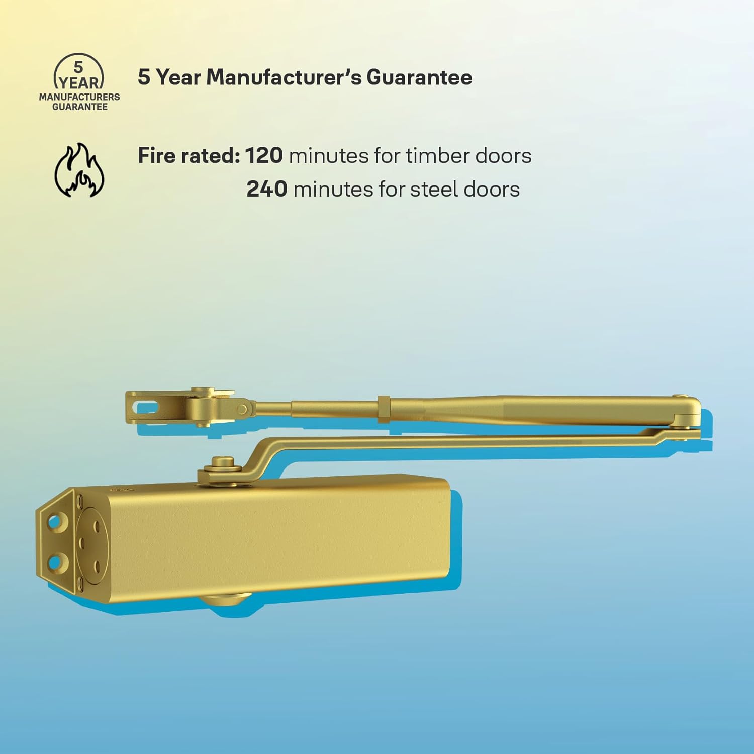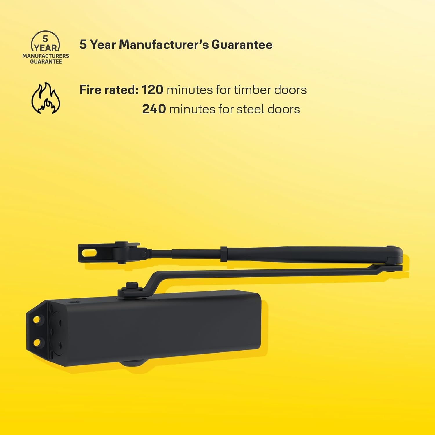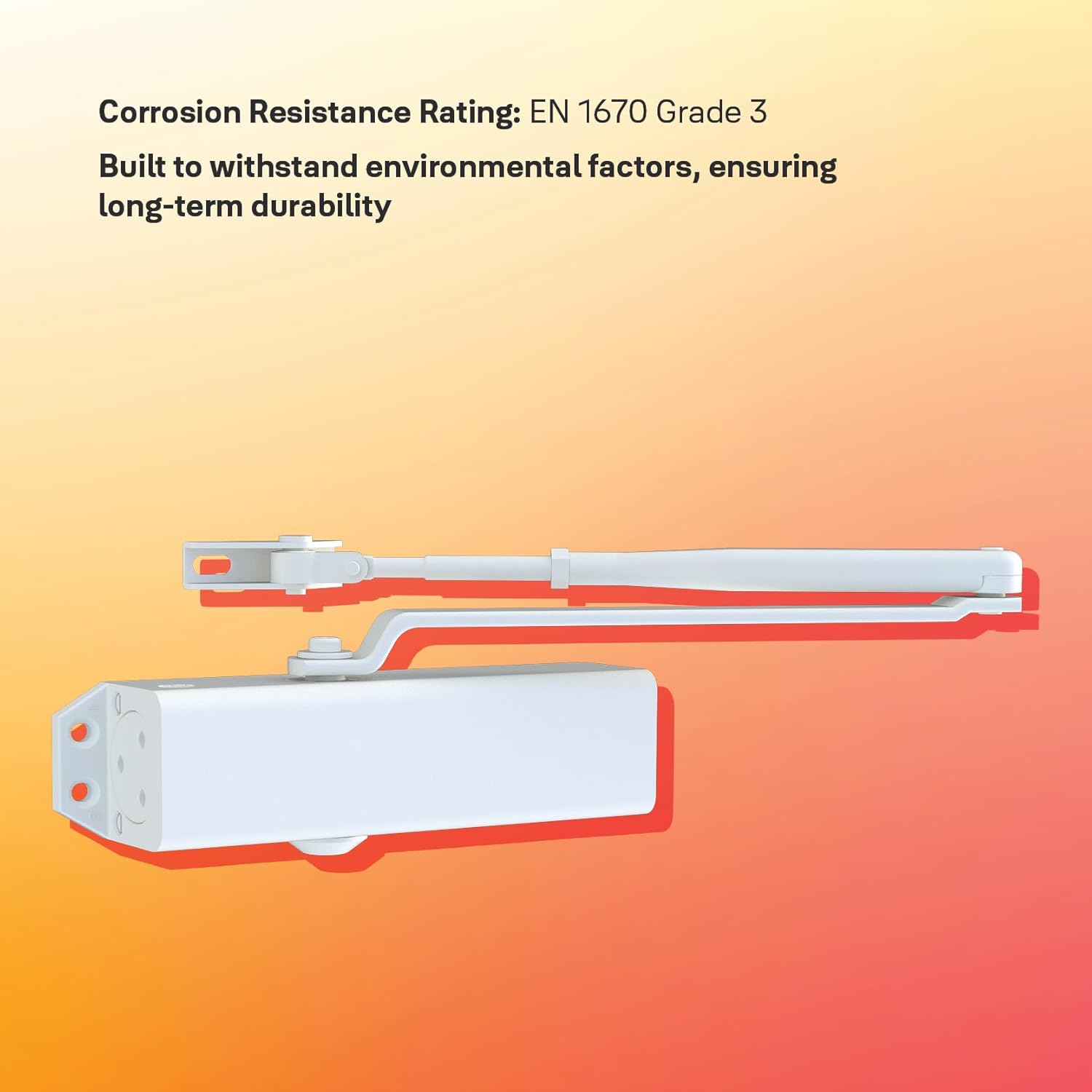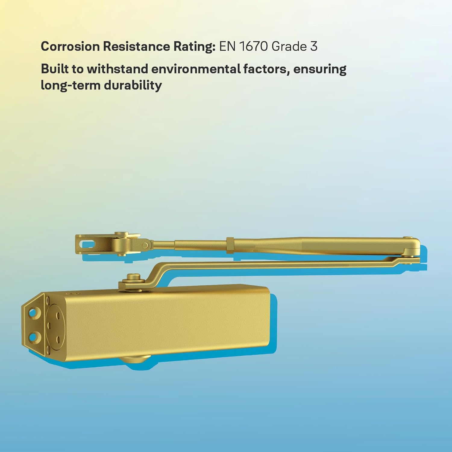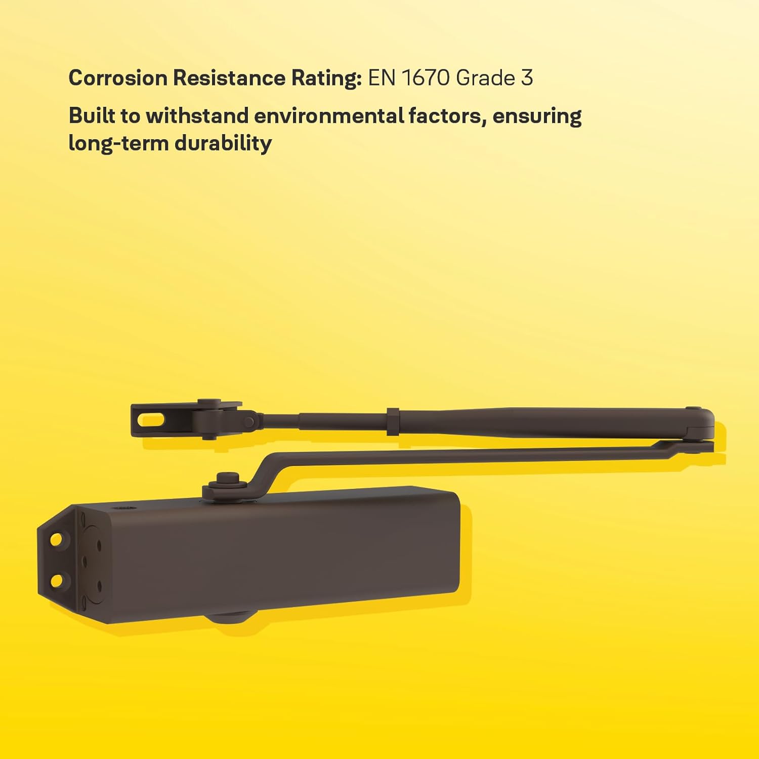 - Corrosion Resistance: With a corrosion resistance rating of EN1670 Grade 3, this door closer is built to withstand environmental factors, ensuring long-term durability even in challenging conditions.