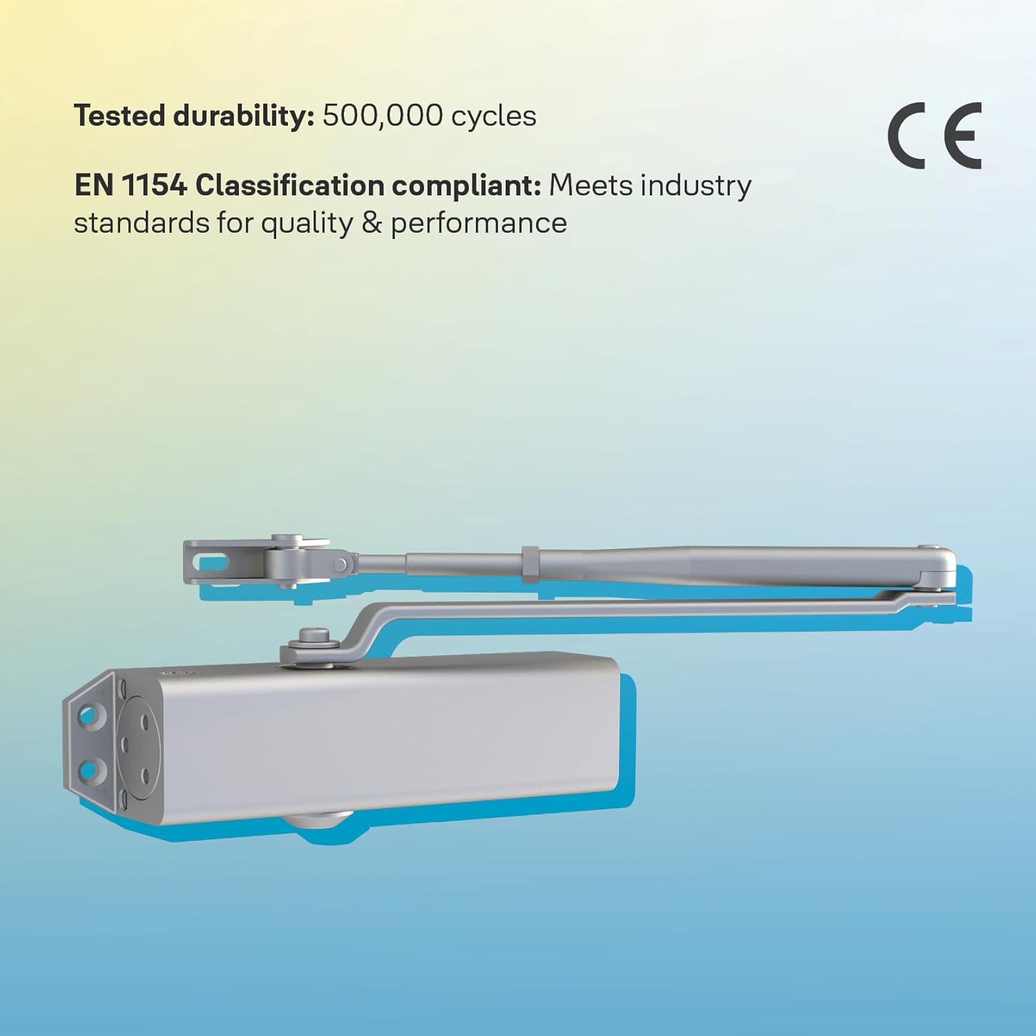- EN 1154 Classification: Compliant with EN 1154 standards, this door closer is classified as 3 8 4/2 1 1 3, meeting industry standards for quality and performance.